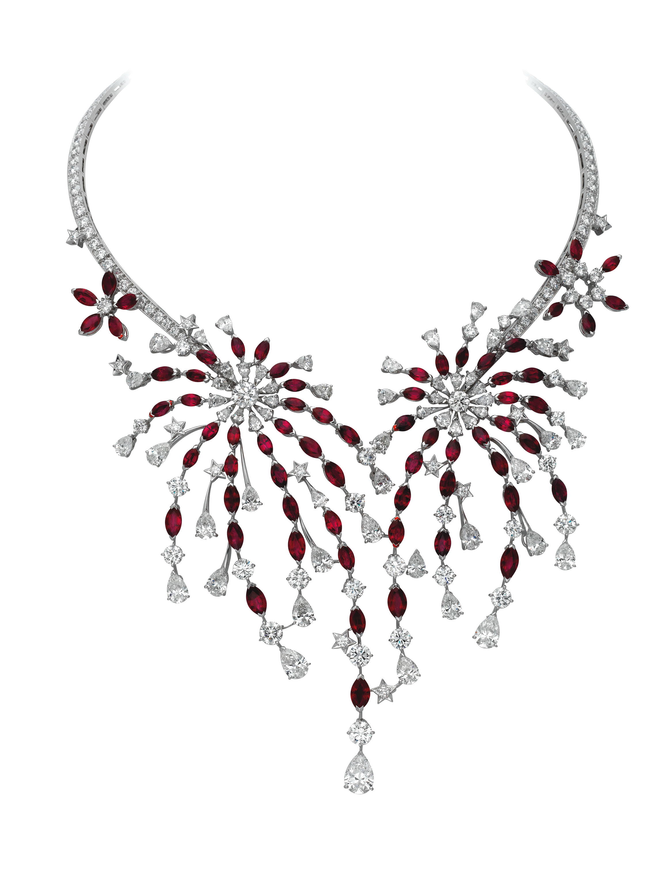 VCARN6DD00 FEU D'ARTIFICE Necklace set in White Gold with a DIF Diamond of 1.52 carats, Rubies and Diamonds